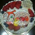 お友達に頼まれたバースデーケーキ フルーツたっぷり プレートはコニーちゃんで と...