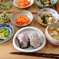 ある日の朝ごはん サラダ ブロッコリーの生姜合え ソーセージ 卵焼き ブルーベリ...