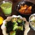 Snapdishの料理写真:野菜スムージー(小松菜青梗菜アボカドパイナップル人参)ブロッコリーほうれん草のサラダ、カブの塩麹、かぼちゃの煮物