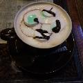 茄子のミートソースパスタ サラダ 宇治抹茶ラテ