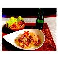 空芯菜とイカのわた入り炒め オリーブオイル ニンニク 塩コショウ 醤油 酒