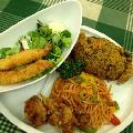 夕食 しいたけハンバーグ サラダ かんぱちローズバターソ...