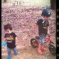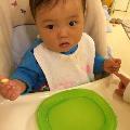 息子クンと手作りおやつ バナナココアケーキ トッピングのとけかけアイスが最高