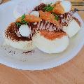 ココア生地にアレンジして 生クリームとバナナと黄桃を一緒にくるくるしました o ...
