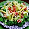鮭の西京焼き 海老春巻き カラフルサラダ キャベツ 胡瓜 カボチャ 大豆 カリフ...