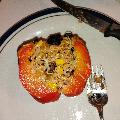 Snapdishの料理写真:Dinner with chinese look like food: fried potatoes and eggplants with p-man and beef meat in spring onion and tomato sauce.
