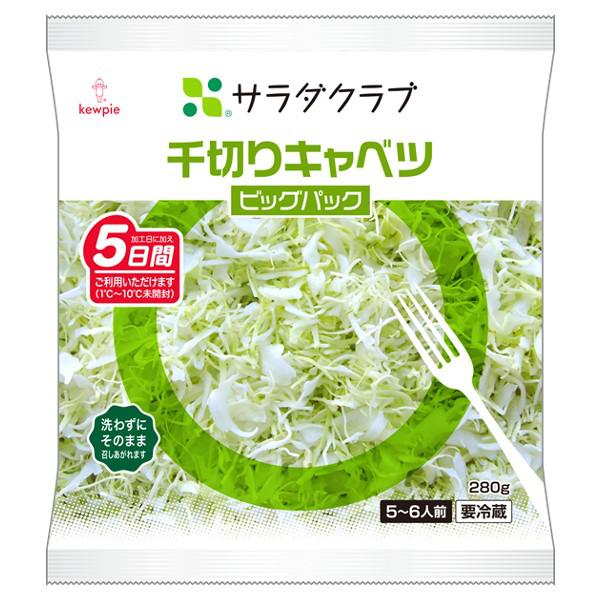 独自の製法で作っている、サラダクラブ自慢の千切りキャベツです。細く、長くカットしているので、お皿に盛りつけると、ふわふわになります。揚げ物の付け合せや、お好み焼きなどのあったかメニューにもおすすめです。